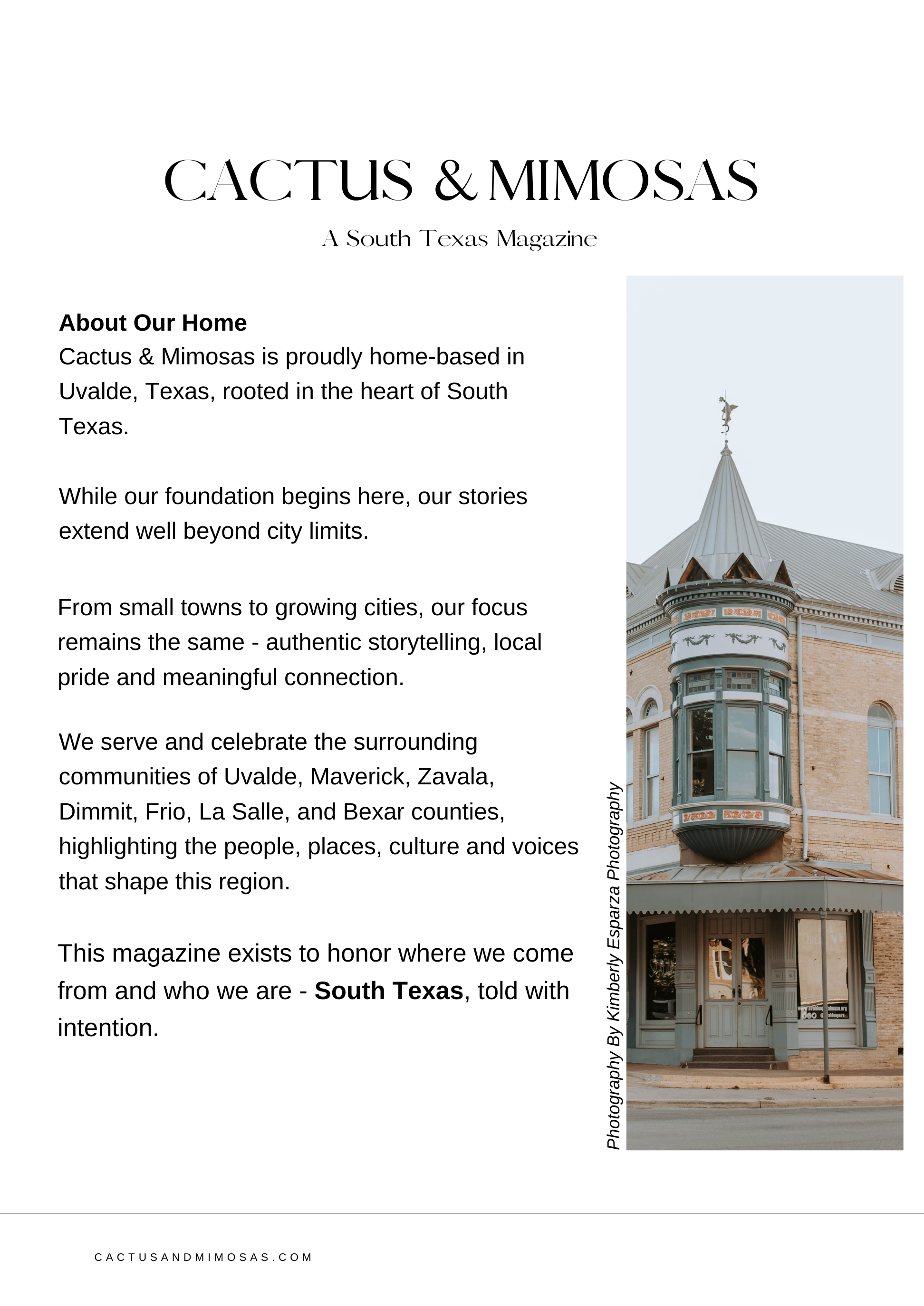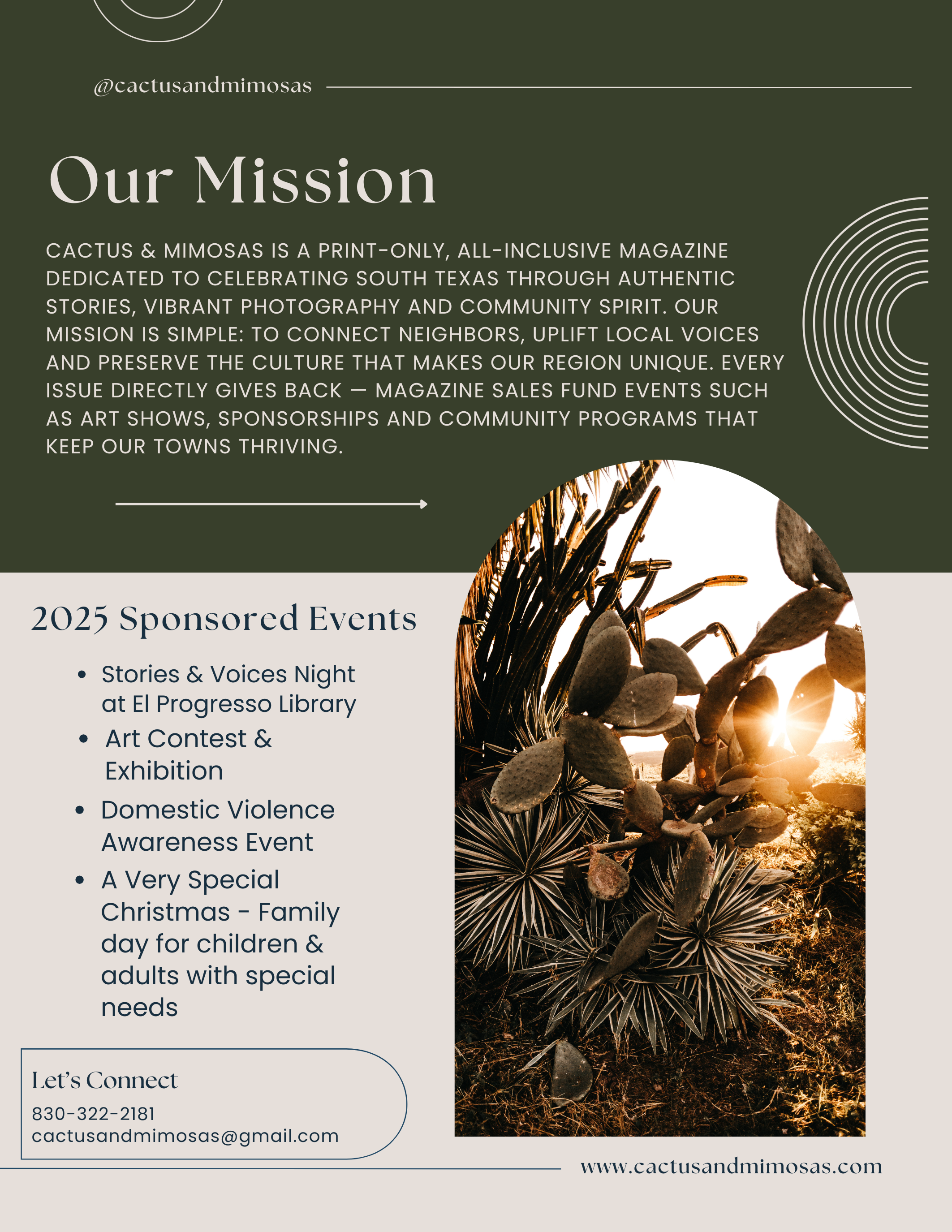 Through editorial features, visual storytelling, and community-driven narratives, we explore the people, places, and moments that define South Texas. We seek out what is often overlooked. We elevate what deserves to be seen.